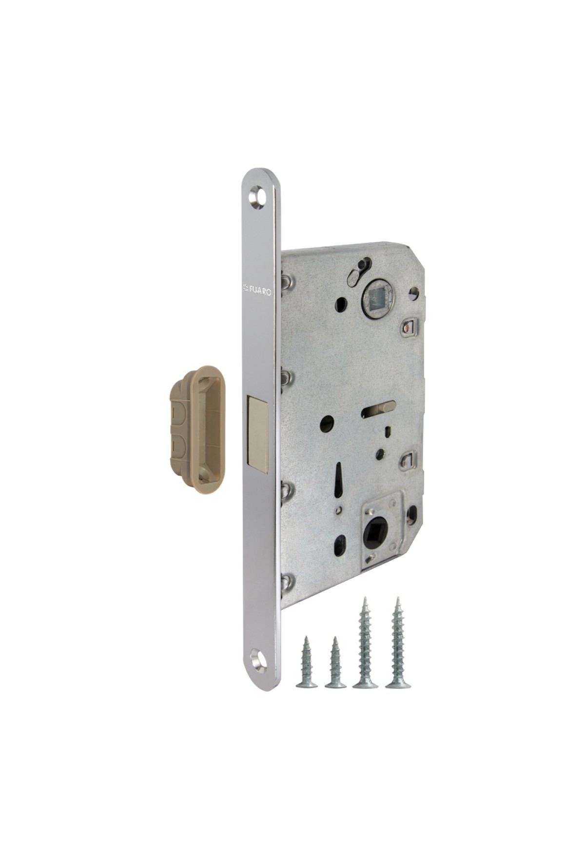 Бесшумная магнитная защелка Fuaro M96WC серии MAGNET изготовлена в соответствии с требованиями ГОСТ 5089-2011. Предназначена для установки в межкомнатные и сантехнические двери. Корпус выполнен из стали с надежным гальваническим покрытием. Магнитный механизм обеспечивает бесшумность работы защелки. Защелка M96WC с усиленным блоком пружин имеет высший 4 класс надежности (250 000 циклов открывания/закрывания). Отверстия под стяжные винты находятся на расстоянии 38 мм. Размер бэксета - 50 мм. Размер межосевого расстояния - 96 мм. Возможна установка дверных ручек на стяжные винты для более прочного крепления. В комплектацию входят: ответная планка и крепежная фурнитура в цвет изделия.